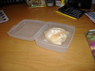 Eu sou muito comilona. No serviço passo o dia a comer. Os meus colegas do serviço até se admiram como eu sou magra, um pau de virar tripas como me chamam... mesmo a comer assim! Trago todos os dias o lanche de casa tanto para o meio da manhã como para comer de tarde. Normalmente é fruta, um pacotinho de leite branco ou por vezes chocolatado, bolachas ou pão com fiambre ou queijo. Antes trazia o pão embrulhado em folha de prata. Fazia isso no meu lanche e no lanche da sassaranica mas depressa me apercebi que o rolo da prata la em casa acabava num instante e que não era propriamente barato. A marca que eu compro custa a volta de 1,99€. Pensei então numa alternativa. Comprei uns tupperware para colocar o nosso pão do lanche. Custou 1,99€ cada mas dão para lavar depois de usados e reutilizar. Alem de serem muito praticos pois não corro o risco de meter o lanche no meu saco e o pão acabar por ficar todo amassado com o resto das tralhas.