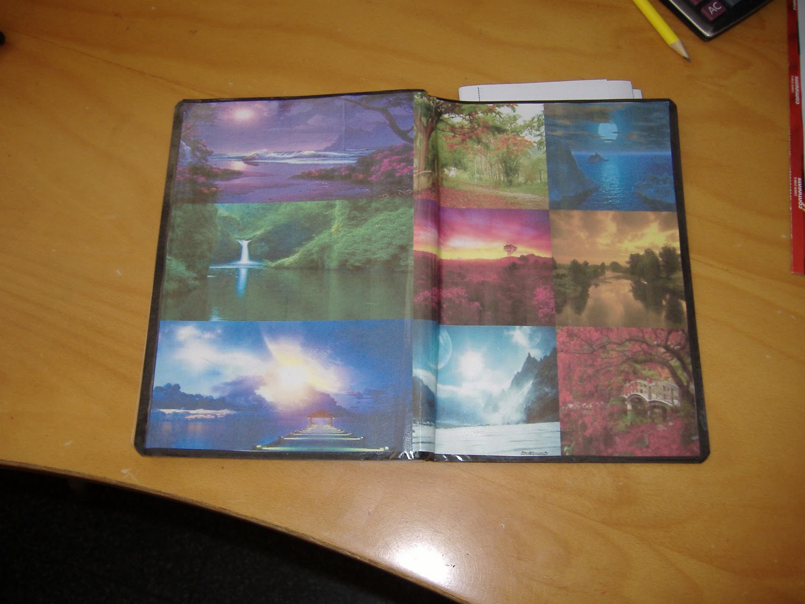 E assim comecei o ano de 2012, com novas resoluções e a mais importante é a de poupar e reutilizar. Para me ajudar tenho esse novo aliado. A minha agenda de "Coisas a Fazer" 2012. É uma simples sebenta de linhas que me custou apenas 0,50€. Fui a net e pesquisei algumas imagens de paisagem que me transmitem calma e serenidade e a seguir colei-as numa folha de word que imprimi. Colei a folha como capa na sebenta e por fim plastifiquei-a com papel aderente. No interior da sebenta fiz uma bolsinha na capa onde coloco alguns talões de supermercado ( contas a dividir com o F.) ou as facturas de agua ou luz que tenho que pagar. A minha agenda serve para eu apontar os gastos que vou fazendo com a alimentação, planear o orçamento familiar, planear as refeições para a semana, escrever a lista de compras, aponto também algumas receitas que encontro em outros blogs que leio e que me parecem apetitosas assim é mais fácil eu encontrar para fazer depois la para casa. A minha agenda é tipo um disco externo da minha memória porque sempre que preciso relembrar alguma coisa que precise fazer é só ir espreitar nessa minha " cábula". A agenda pode se ajustar a necessidade de cada um, já que escrevemos basicamente o que queremos nela. Eu tenho muito mais controlo com as minhas despesas desde que comecei a apontar tudo. Por exemplo no inicio de cada mês eu coloco as despesas fixas todas que tenho de pagar durante o mês tais como agua, luz, gás, mensalidade do infantário, mensalidade da escola, etc, etc, etc.... e conforme vou pagando coloco um visto a frente e assim sei que aquela conta já está paga. Os talões de supermercado agora também aponto tudo, assim fico com uma ideia muito mais precisa do valor que eu gasto com alimentação la para casa. Quando tenho alguma tarefa agendada que não me posso esquecer também ponho um lembrete na " marcação de actividades".