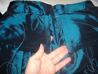 Aplicar a parte que sobrou da saia quando se cortou para fazer o efeito peplum. Eu fiz a costura por dentro para nao se ver